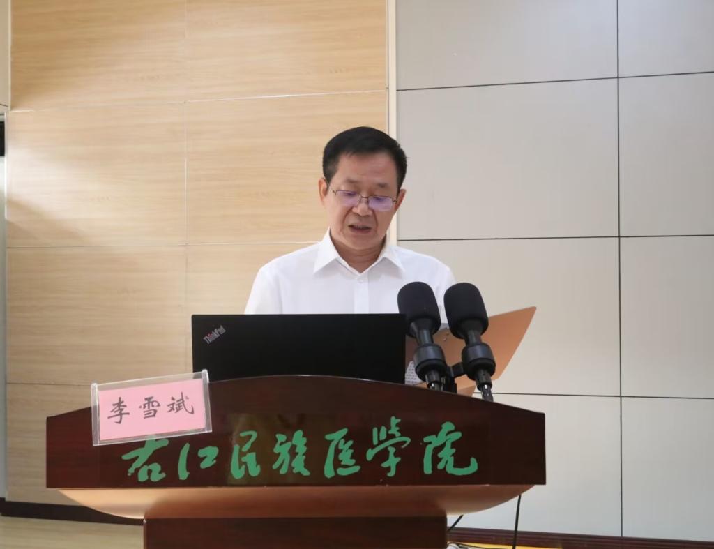 会议在嘹亮的国歌声中拉开了帷幕。学校校长、校友会会长李雪斌发表了热情洋溢的致辞,他首先代表邓砚书记和全校师生员工向大会的召开表示热烈的祝贺。李校长指出,今年正值右江民族医学院建校65周年及检验专业办学35周年,这三十五年,是一幅坚持发展,勇于创新的奋斗画卷;这三十五年,是一首抢抓机遇,只争朝夕的奋斗凯歌。学校及医学检验学院的发展需要一代又一代“检验人”,继续发扬“艰苦创业、自强不息”的右医精神,薪火相传,接续奋斗。