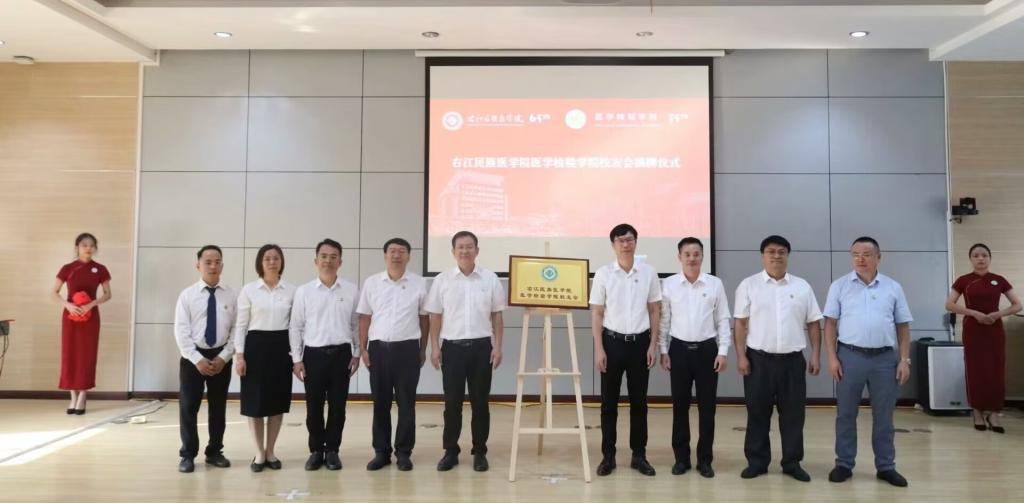 会上学校校友会副会长周岐江宣读同意成立右江民族医学院医学检验学院校友会的有关批复。与会领导和嘉宾为右江民族医学院医学检验学院校友会揭牌。学校校长、学校校友会会长李雪斌为名誉会长、名誉副会长颁发聘书;学校副校长、检验学院校友会名誉会长解继胜为顾问委员会委员颁发聘书。校友代表为办学资深教师代表献花以谢师恩。