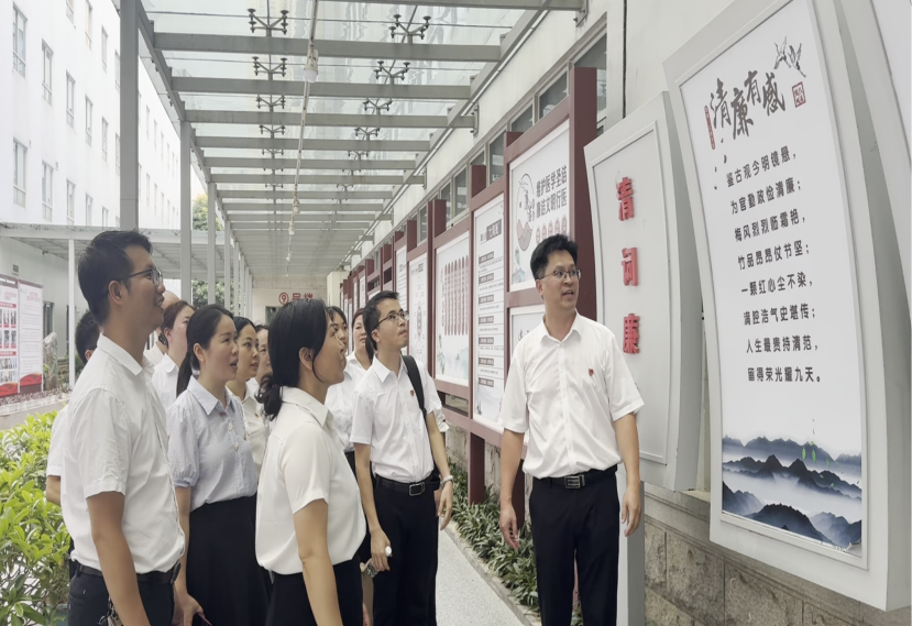 活动的最后,全体人员移步到医院廉洁文化长廊,开展了“树清廉家风 筑医德根基”主题参观活动。王春芳书记结合医疗行业特点,深入解读了《中国共产党廉洁自律准则》和《医疗机构工作人员廉洁从业九项准则》,倡导党员干部以身作则,推动廉洁家风,促进党风和行风的正气。同时,组织委员黄春传带领大家朗读廉洁诗歌,进一步深化廉洁从业意识。