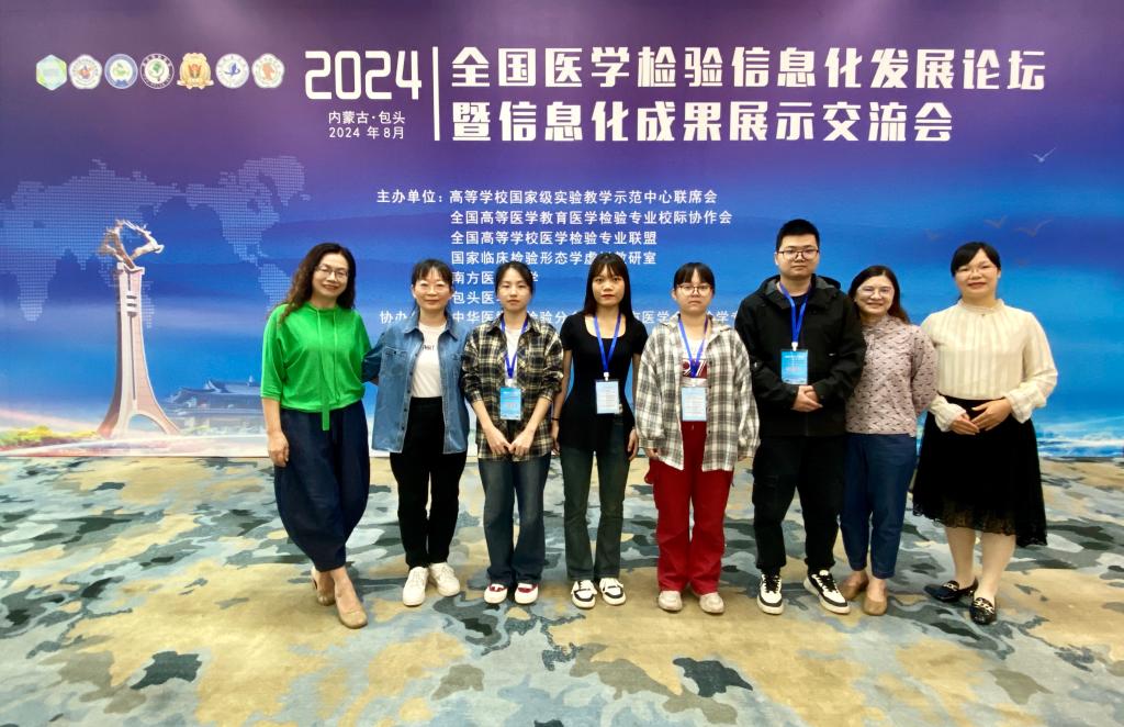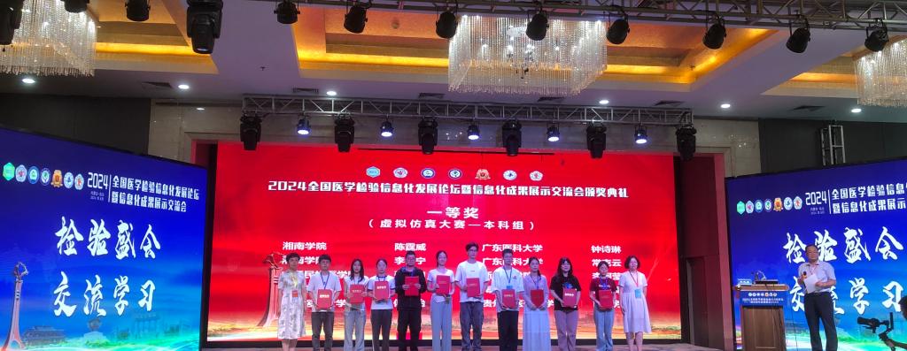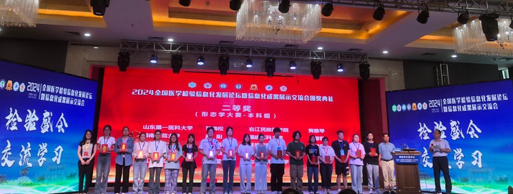 2024年8月17日-18日,2024年全国医学检验信息化发展论坛暨信息化成果展示交流会在包头医学院举行。交流会期间同步举行第八届全国医学检验技术专业大学生形态学大赛、第三届全国虚拟仿真临床实验诊断大赛、第七届全国医学检验金微课比赛。本届比赛吸引了全国65所高校的128名学生参加形态大赛,72名学生参加虚拟仿真大赛。最终代表我校参加比赛的2021级检技本班4名同学均晋级总决赛,其中叶桓伶同学获形态大赛一等奖、黄雅琴同学获形态大赛二等奖;张汉申同学获虚拟仿真诊断大赛一等奖、周春雷同学获虚拟仿真诊断大赛二等奖。梁丽娜老师获金微课比赛二等奖。