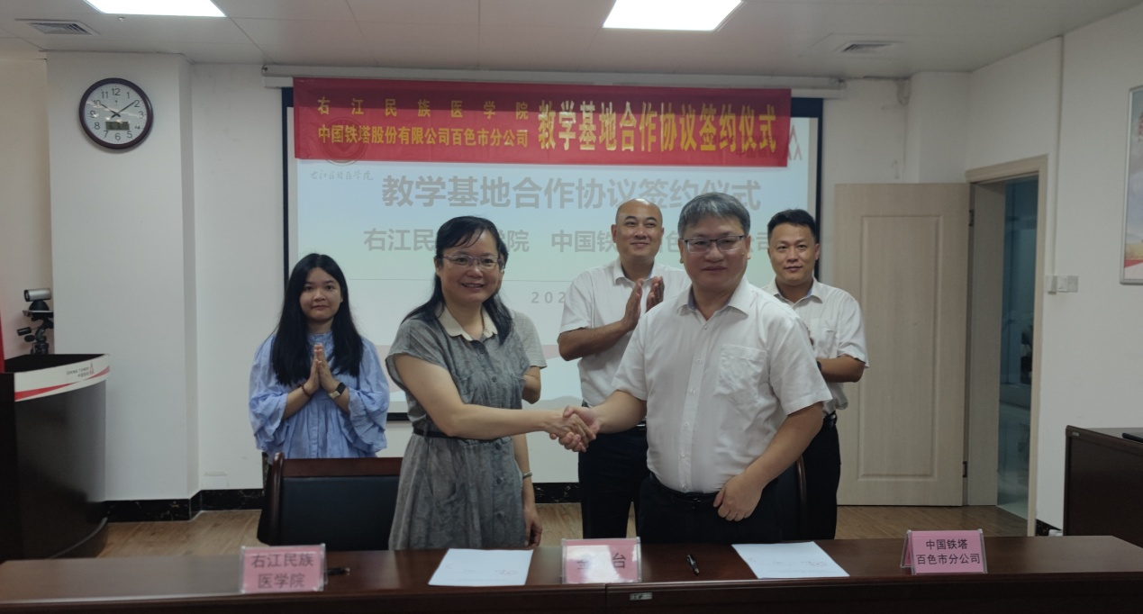 6 月 6 日,右江民族医学院betway必威西汉姆联官网与中国铁塔股份有限公司百色市分公司举行教学实践基地签约揭牌仪式,双方围绕“实践育人、产教融合”主题,在人才培养、实习就业、技术创新等领域达成深度合作意向。学院党委副书记梁楚晗、铁塔百色分公司党委书记、总经理龙秀珍等领导出席活动。