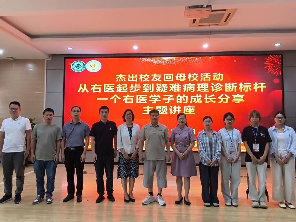 9 月 8 日,betway必威西汉姆联官网在 5-101 学术报告厅举办 “检学堂” 主题讲座,特邀佛山中医院病理科主任、学院92级临床医学专业校友毛荣军,以 “从右医起步到疑难病理诊断标杆 —— 一个右医学子的成长分享” 为题,分享职业成长历程与行业经验。学院院长庞雅琴、党委副书记梁楚晗、副院长宗子傲,以及学院教师代表、各班级学生代表200余人到场参与。