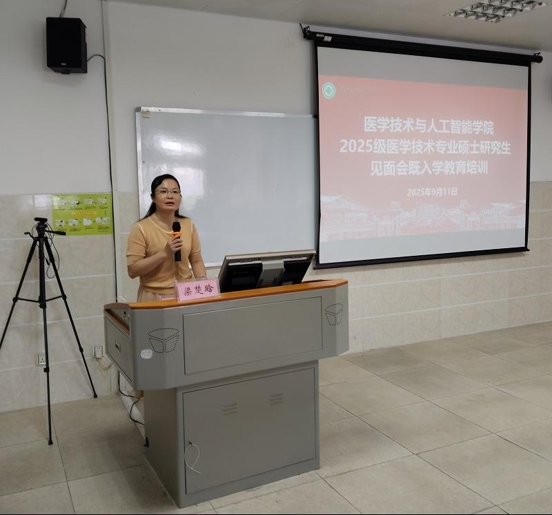 入学教育培训环节由梁楚晗副书记主持,重点介绍了研究生培养与管理相关要求。通过系统培训,同学们纷纷表示收获颇丰,对学院和研究生培养体系有了更全面的认识,进一步明确了学术目标与行为准则。大家承诺,将牢记学院领导的嘱托,以严谨的治学态度、勇于探索的精神和诚信守正的品格,在“医智融合”的新征程中奋力拼搏,不负期望,书写精彩的学术人生。