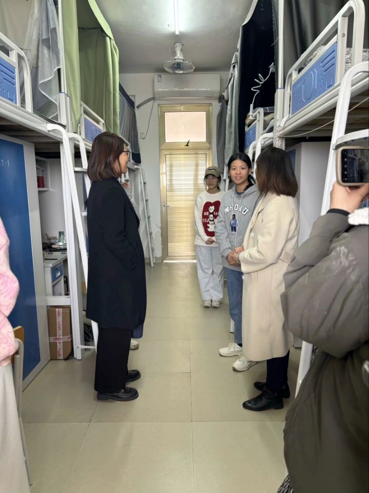 在走访学生宿舍期间,王俊利副校长一行逐一查看了学生宿舍情况,并与学生亲切交谈,了解他们在百东校区学习和生活情况。同时,还对学生公寓的卫生、安全等情况进行了检查,并提醒同学们要增强安全意识,注意各类安全问题。
