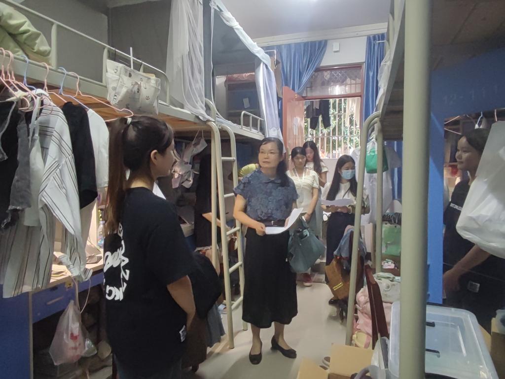 9月4日下午,医学检验学院组织开展了走访学生宿舍活动。学院副院长庞雅琴、党委副书记梁楚晗以及办公室、学生科辅导员等一行参加了此次活动。