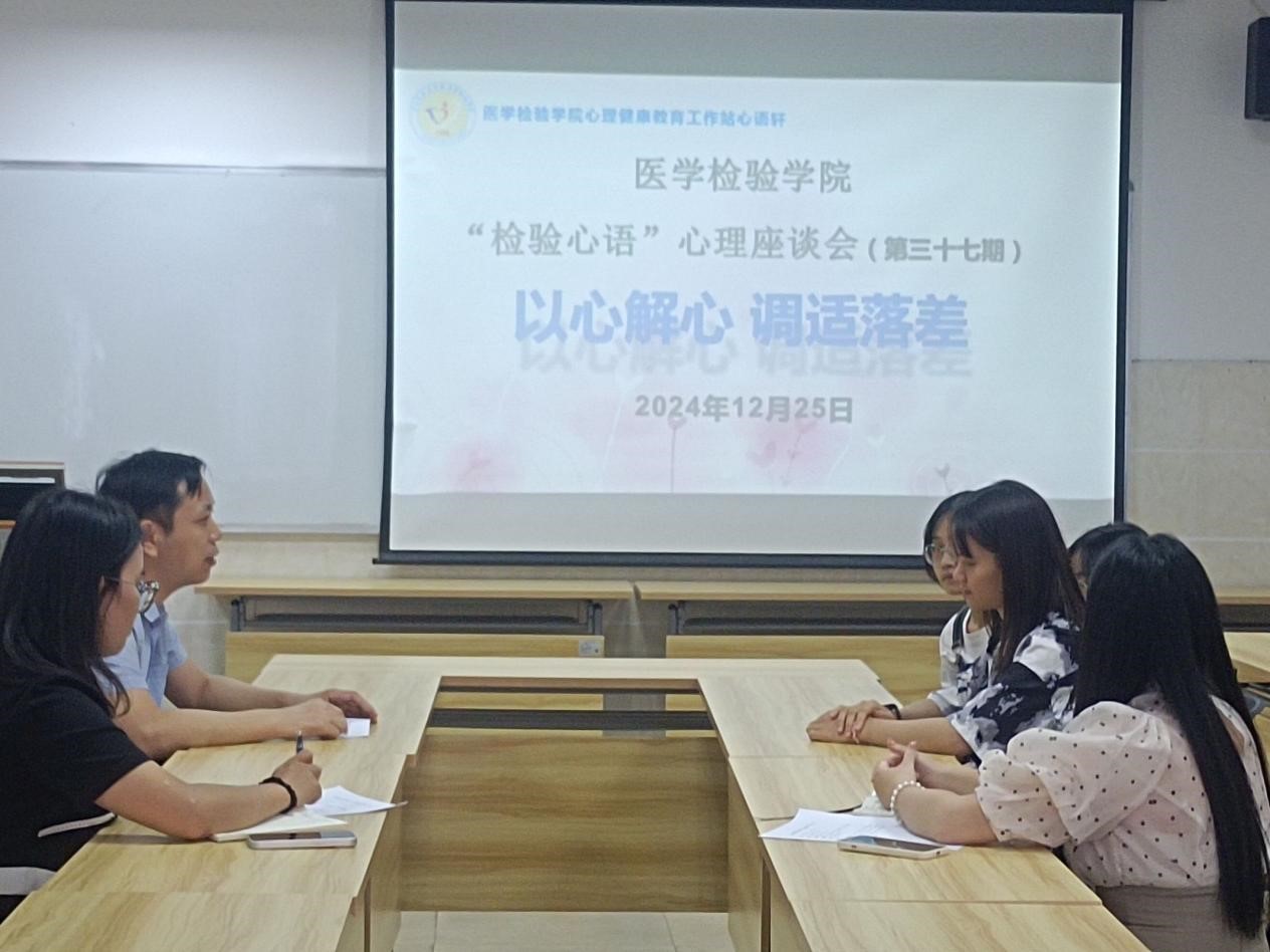 9月25日,医学检验学院于7栋11楼会议室开展了以“以心解心,调适落差”为主题心理座谈会。医学检验学院学生科王超老师、王菲老师以及吴桂群老师出席本次座谈会。