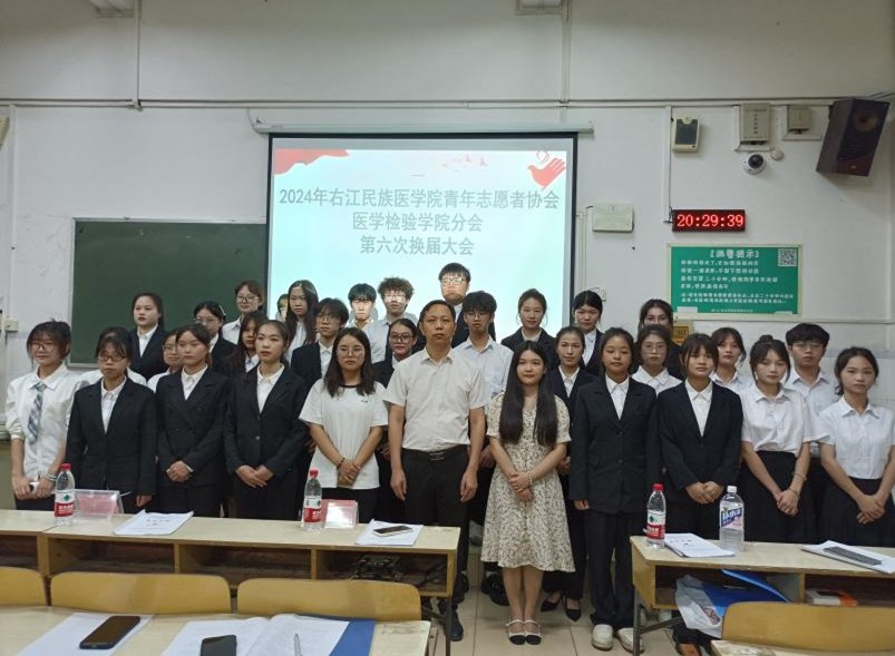 11月15日,右江民族医学院青年志愿者协会医学检验学院分会第六次代表大会在5栋教学楼506教室举行。参加本次会议的有王超老师、吴桂群老师、王菲老师、青协总会代表、各班代表、青协医学检验学院分会在任的理事和干事。