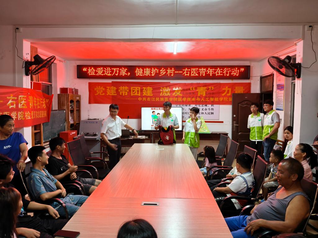 晚上八点半,系列惠民宣讲活动在村支部会议室正式拉开帷幕。志愿服务队围绕村民实际需求,精心准备了防治高血压、膳食营养、化验单解读、人工呼吸及海姆立克急救法五项内容,切实将健康知识送到群众身边。