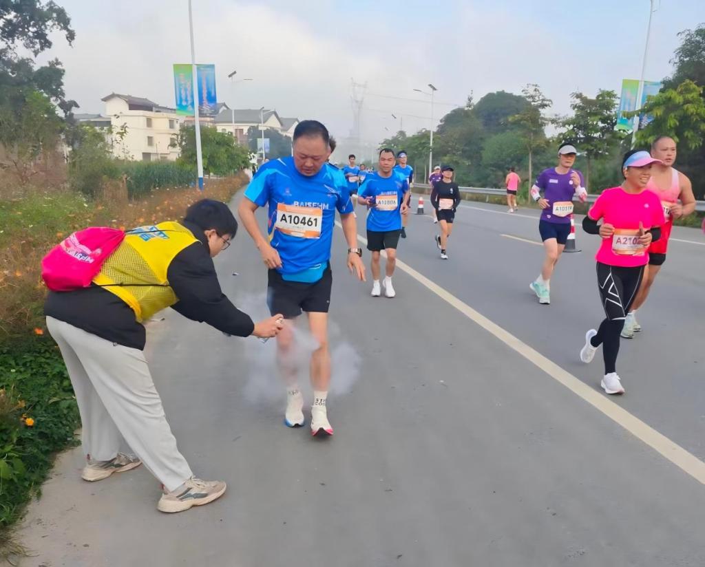 当日凌晨5时30分,betway必威西汉姆联官网的志愿者们已身着志愿服装,准时抵达各自负责的服务点位,并迅速进入工作状态,按照赛前培训和部署有条不紊地开展补给物资清点,设置路线标识和安全隐患排查,为赛事筑牢防线。上午7时30分,随着发令枪一声鸣响,跑者们奋力向前奔跑,志愿者们即刻切换至服务模式,全身心投入赛事保障。他们在赛道沿线为选手呐喊助威,在补给站点为选手提供物资,在医疗观察点协助医护人员快速处置突发状况,用心守护选手的健康,确保赛事顺利推进。